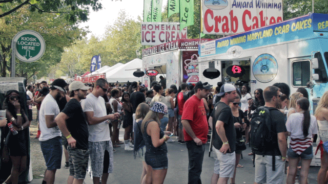 A skate park was close to the entrance and located right next to the Skate stage. There was a two-story Budweiser bar on wheels in the middle of the four-lane throughway, with food trucks flagged on one side and bathrooms on the other. There was a carousel too but apparently it was easy to miss, as I did not notice it until the second night. Shea Moisture had a booth, with a steeply-priced pop-up hair salon. Water cost $3/bottle, but there were refilling stations throughout the venue. Good luck getting through the crowd to get to one though. If you wanted a little alcohol in your system, beer cost $12.